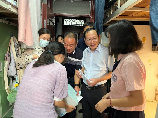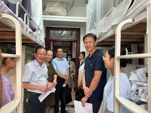 随后,副校长王世敏、资产经营有限公司领导班子、院党委书记林二友、院长张修华、院党委副书记刘念、副院长文为、辅导员与班主任代表一同前往普宿七栋看望英国365集团官网学子。王世敏校长十分关心学生的生活条件与学习状况,对不同学科专业的学生均提出了有针对性的学业建议,鼓励同学们努力学习、不负韶华、不负时代重托。