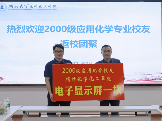 上午10点,2000级应用化学优秀校友、国家杰青、南开大学化学院李福军教授做了一场《钠离子电池正极材料及电芯》的学术报告,并和院师生分享了科研趣事。之后校友们漫步于校园,大草坪、日月广场、图书馆、宿舍楼、体育馆……回忆过去点点恍如昨日!下午4点,一场主题为“奋进二十载,归来仍少年”的欢迎仪式在学院二楼报告厅拉开帷幕。化学化工院院长张修华教授发表致辞,对校友们的归来表示热烈欢迎,并回顾了过去二十年学校与校友共同成长的辉煌历程。其他领导及老师也表达了对校友的热烈欢迎,为校友们在各自岗位上取得的成绩感到高兴。校友代表上台,分享了过去在校生活的趣事,表达了对学院和各位老师的感激之情。肖志华处长作为教师代表发言,他高度赞扬了各位校友在各自领域取得的成绩,回顾了20多年前与大家共处的美好时光,希望各位校友关注母校发展并常回母校交流。各位校友踊跃发言,抒发对学院栽培的感恩之情,同时也期待与学院及校友们能有更多的合作。2000级应用化学专业校友向学院赠送会议室电子显示屏一块,表达了对学院建设发展的支持。