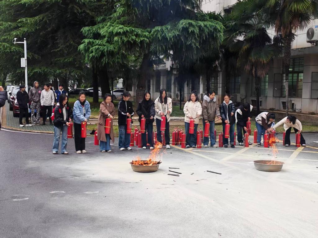 在消防实战演练时,师生系统学习了灭火器的适用场景与操作原理,逐一亲身体验灭火器使用操作,精准掌握“拔销、对准、按压”等关键动作。在火灾现场逃生演习中,师生按照指引低姿弯腰、湿毛巾捂鼻,沿预定疏散路线快速有序撤离至安全区域,完整模拟了火灾应急逃生全过程。本次消防实战演练,有效提升了大家的安全防范意识与应急处置能力,切实达到了“以学促防、以练强能”的演练目的。
