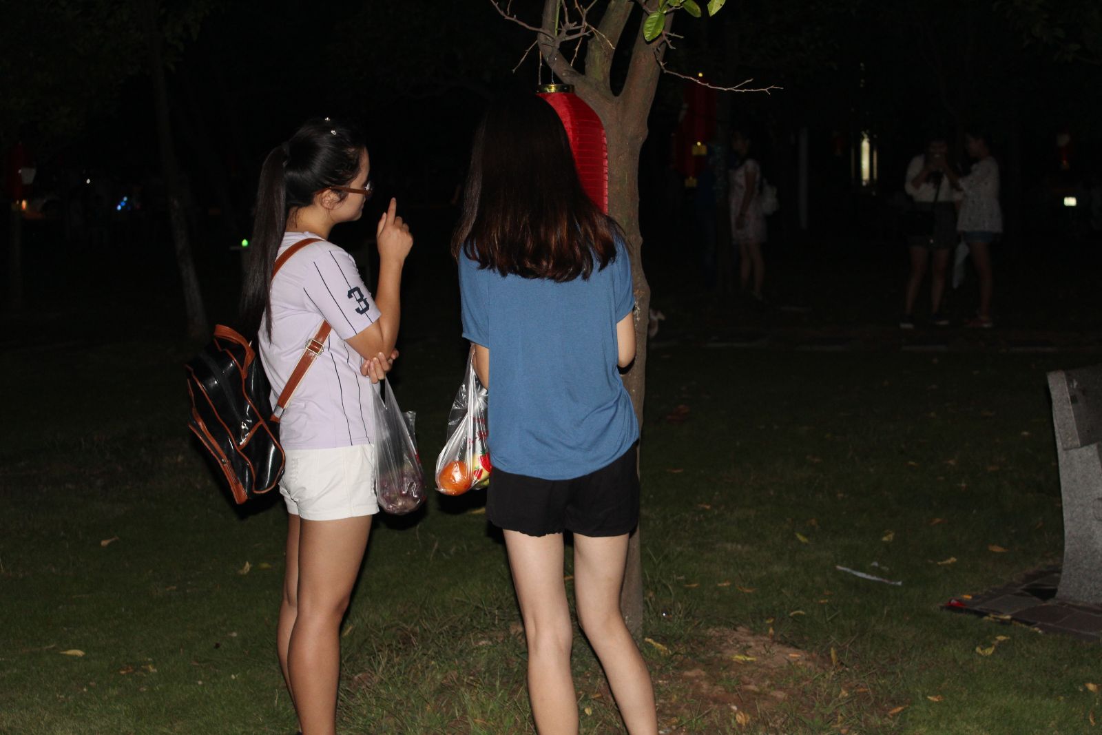 求索广场旁草坪上六条相互交叉的路,共有60棵树,每棵树上都挂着一个贴有字谜的灯笼。广场前来来往往的人纷纷驻足观赏猜谜。“我觉得这些灯笼布置的非常漂亮,有诗情画意,很有节日的气氛。”化学化工学院教官胡乔满指着身旁的另一个教官说道,“我们刚刚一路看过来,他也猜对了很多。”据杨程解释,每一个灯谜的答案都写在背面,猜灯谜的人“拨云”即可“见月”。此举就是为了促使大家了解灯谜知识,传播传统文化。