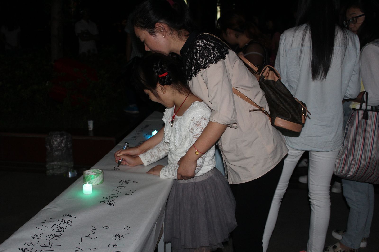 (通讯员 叶妞 肖睿弘 长江网记者 王刚)六十个红色的灯笼依次悬挂在每一棵树上,八张长方形桌子分布在整个草坪,长100米宽70厘米的长卷铺在广场前的长桌上。中秋佳节的晚上,湖北大学图书馆门前求索广场上举行了颇具节日气氛的婵娟灯会。